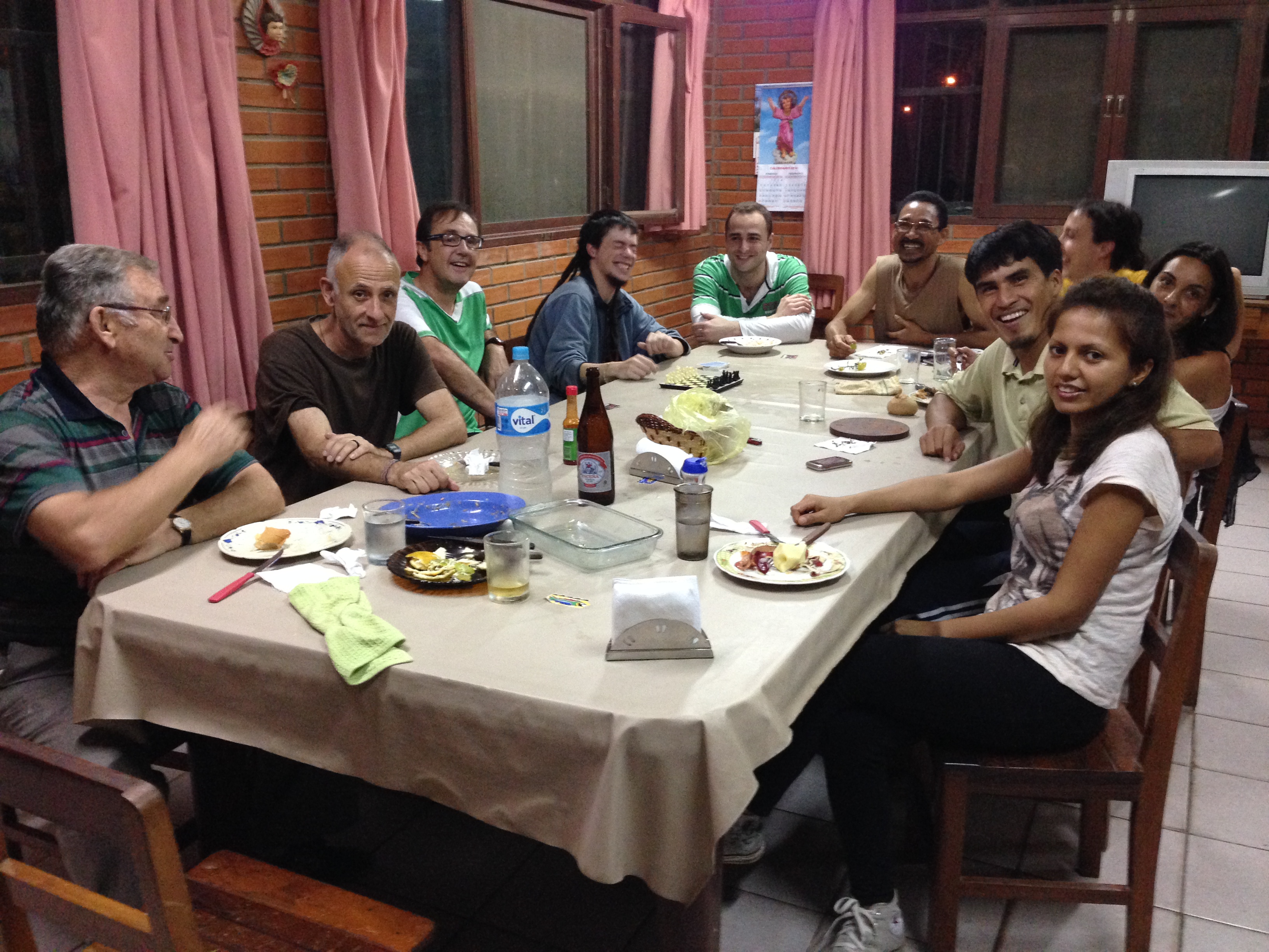 “La Casa de los Alegres” es una casa sencilla compuesta por 10 habitaciones para voluntarios en la que no tenemos televisión, lavadora, microondas o cualquier bien de los que podamos considerar “normales” o “corrientes”, ya que la idea es vivir lo más parecido posible a los vecinos del lugar. Los voluntarios van y vienen por distintos periodos de tiempo, y actualmente la casa cuenta con gente de Bolivia, España y República Dominicana. Cada día cocina uno para el resto, y he de decir que el nivel es alto, por lo que tendré que aplicarme. De momento he sido capaz de hacer unos espaguetis boloñesa con tomate frito casero. Para los amantes de la cocina os parecerá de lo más simple, pero en mi caso, cuando he ido a la tienda de D. Mario a comprar tomate frito y me ha dicho que aquí de eso no hay, os puedo asegurar que el elaborar mi propia salsa de tomate frito ha sido un auténtico desafío. Creo que no me salieron mal del todo.