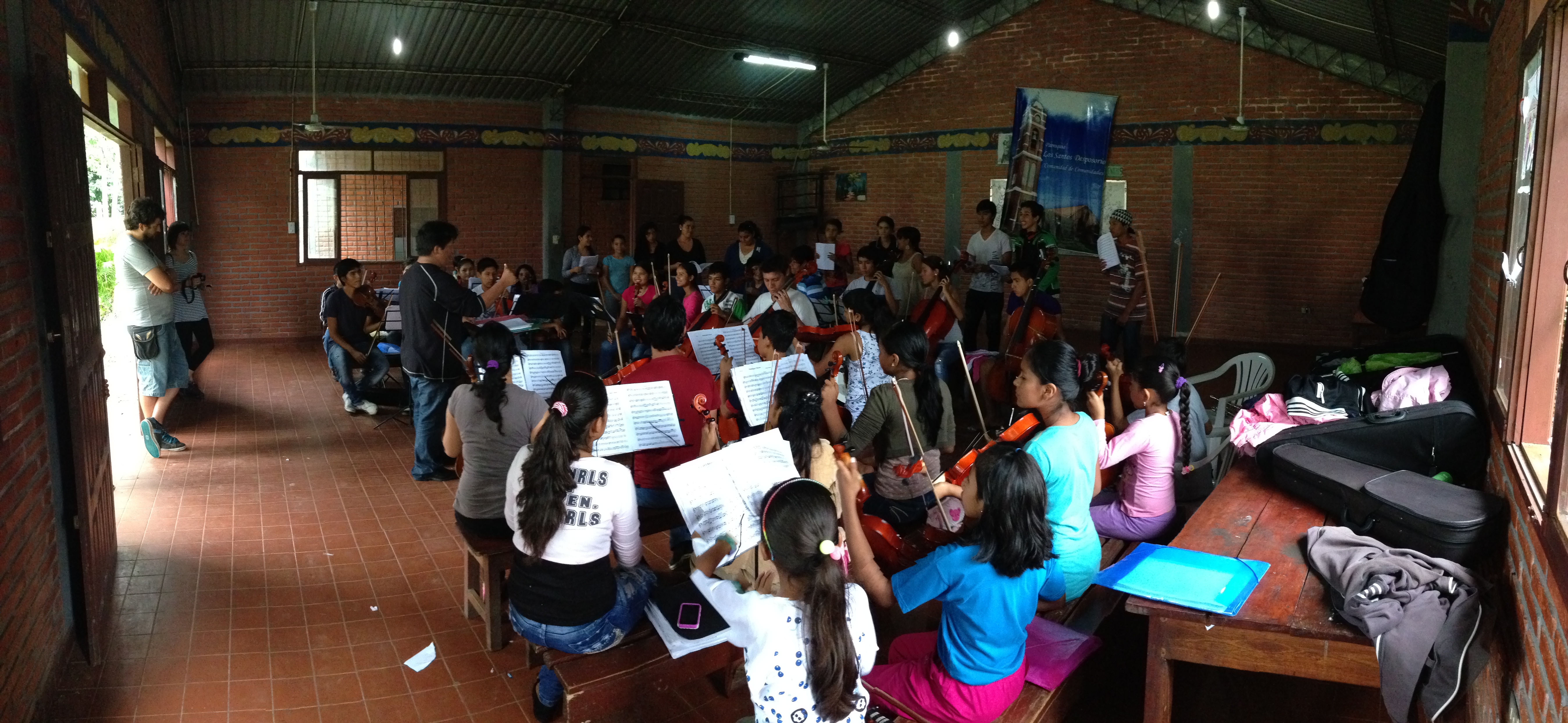 Hace un mes tuvieron participando en la Gran Chiquitania participando del «Festival de Temporadas», presentándose en las Misiones de San Ignacio y Santa Ana…resultado: A pocos días se recibe una invitación desde Buenas Aires para participar en el «XIV Congreso Internacional de Orquestas». Muy sorprendente porque a pesar de haber otras escuelas de talentos en la región, la nuestra es la única invitada. No creo que podamos enviar a toda la orquesta y coro porque los organizadores no cubren gastos en absoluto y no recibimos ningún apoyo oficial de instituciones del estado en nuestro País, además del escaso tiempo que se tiene, aunque si estamos todos en conjunto haciendo grandes esfuerzos y buscando apoyo de amigos del coro y orquesta para poder enviar a unos 5 chicos para que participen de los talleres, charlas magistrales y participar del mega concierto de orquestas como miembros tocando en el mismísimo Luna Park de Buenos Aires a realizarse a mediados de octubre próximo.